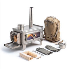- 3 Security Features: The tent wood stove features a US Forest Paint coating process, ensuring odorless heating and cooking. Made with alloy steel, it is rust-resistant. The Japanese NEG fireplace glass provides clear visibility of the fire's intensity.
