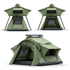 The fold-out design instantly doubles your living space, giving you room to stretch out and relax above the ground. Inside, a high-density foam mattress provides restful sleep, while integrated star-gazing windows let you drift off beneath the night sky. Multiple mesh-lined ventilation windows and adjustable awnings ensure airflow while keeping bugs out.